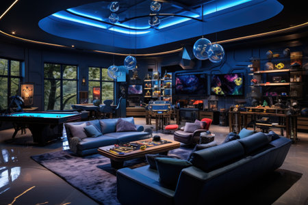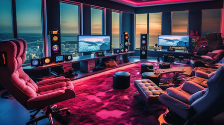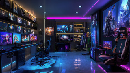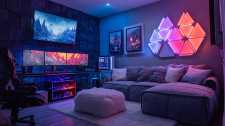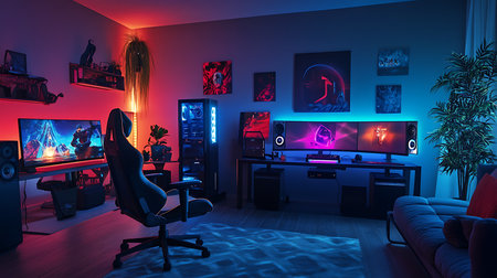 Explore a vibrant gaming room featuring advanced tech and modern decor.