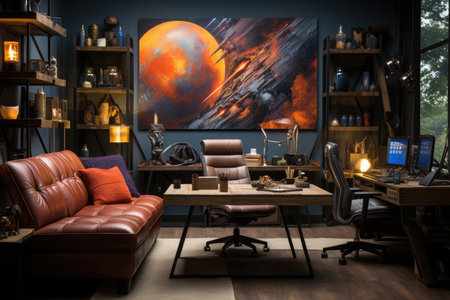 Inspiring office interior design Retro style Lounge featuring Vintage accents architecture. Generative AI AIG 31.