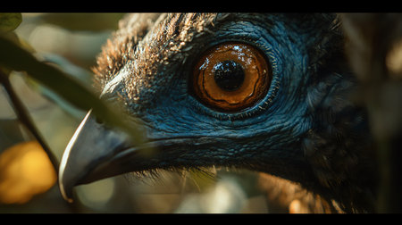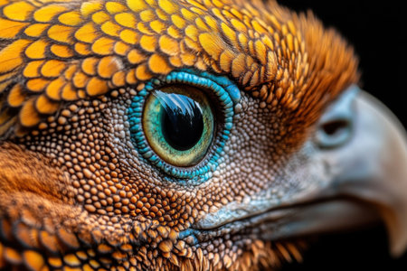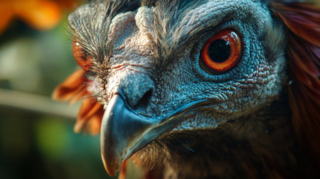 This stunning close-up photograph showcases the intricate details of a bird's face, highlighting its vibrant colors, unique textures, and captivating gaze. Perfect for nature lovers and wildlife enthusiasts.