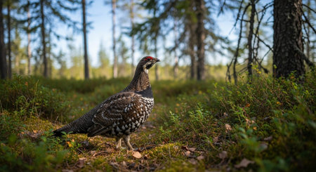 AI Generated. Wild pheasant in natural habitat with blurred forest field background copy space for text