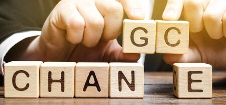 Hand Changing word from CHANGE to CHANGE On Wooden Cube
