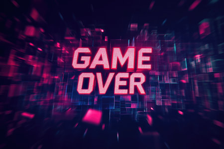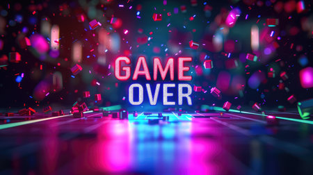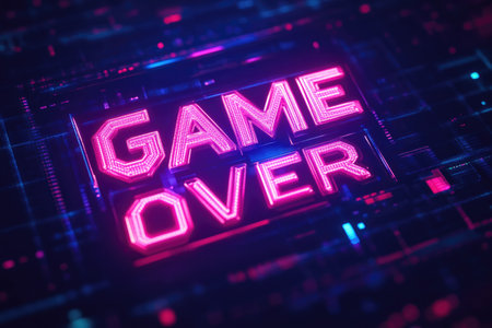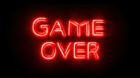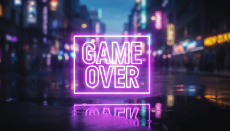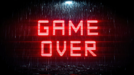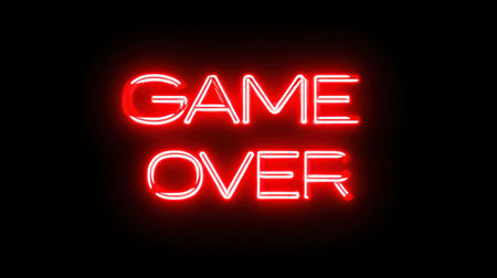A vibrant neon sign reading Game Over, glowing in bright red against a dark background. This striking image symbolizes failure in gaming and creativity.