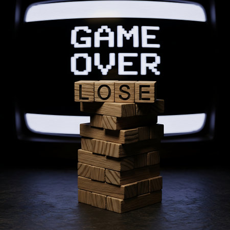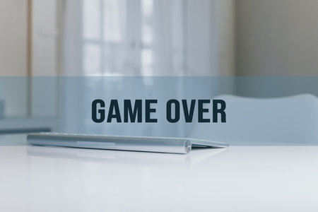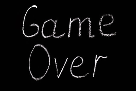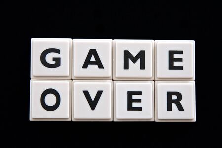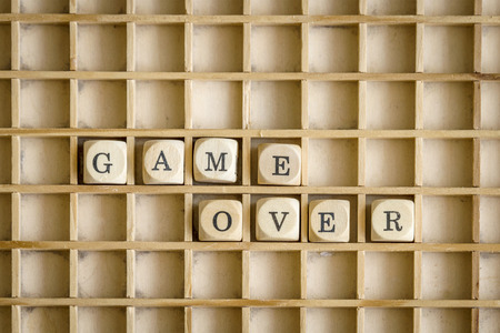 the words game over made of bright wood cubes with black letters on a dark wooden background