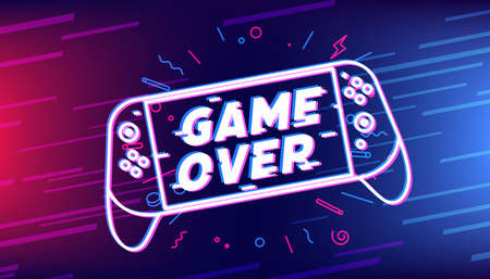 Retro Game Over Neon Sign on Black Background. Gaming Concept. Video Game Screen.