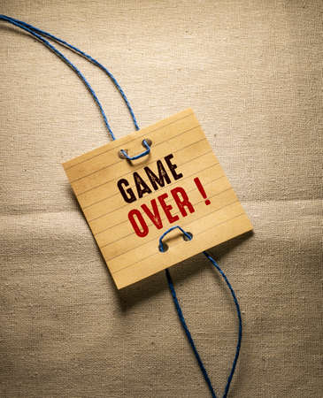 Text sign showing Game Over. Business photo showcasing A situation where one has to try again to reach a goal Label attached string colorful background empty blank space attach string