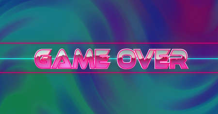 Image of game over on multicolour changing background. game, entertainment and technology concept digitally generated image.