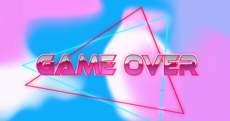 Displaying neon pink GAME OVER text in abstract interface, with hot pink and cyan triangle outlines. Cyberpunk, futuristic, technology, digital, abstract, neon, network