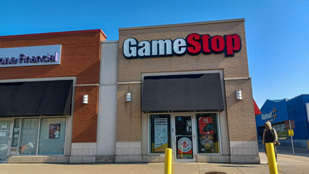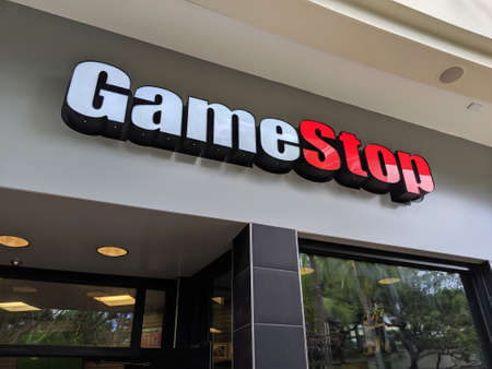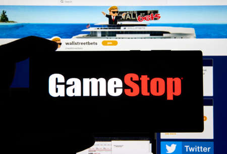 Montreal, Canada - February 3, 2021: GME GameStop ticker and price over wallstreetbets webpage. Gamestop GameStop Corp. is an American video game, consumer electronics, and gaming merchandise retailer