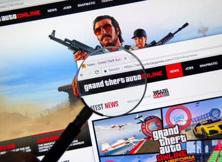 MONTREAL, CANADA - NOVEMBER 7, 2017: Grand Theft Auto Online home website. The game is a persistent open world online multiplayer video game developed by Rockstar North and published by Rockstar Games