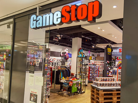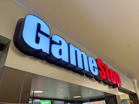 Toronto, ON, Canada – July 30, 2025: View at the sign of GameStop computer game store in shopping mall.
