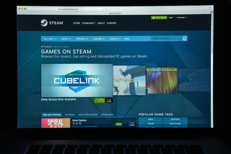 Milan, Italy - August 10, 2017: Steam store website. It is a digital platform by Valve Corporation. Offers digital rights management, multiplayer gaming, video streaming and social network. Steam logo