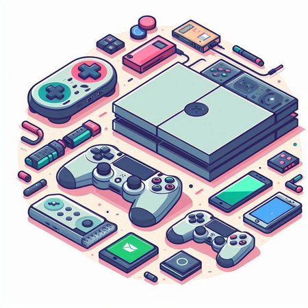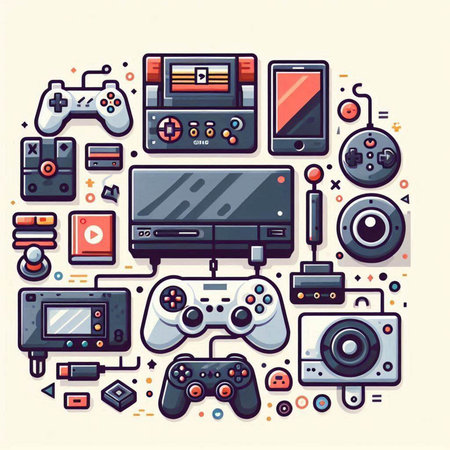Modern gaming setup featuring controller, headset, and smart devices on vibrant background