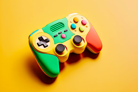 bright multi-colored gamepad for gaming on yellow background