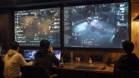 Professional gamers playing online video games at home using computer and streaming live stream, cyber sport concept