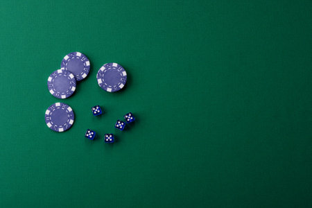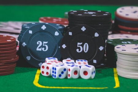 Dice ,Poker Chips Multicolor with a green background