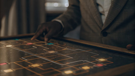 Closeup focus on intricate details of a holographic decision tree mapping out strategic options enhanced by colorful animations that help visualize potential outcomes in real time..