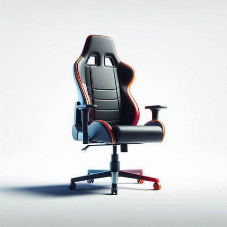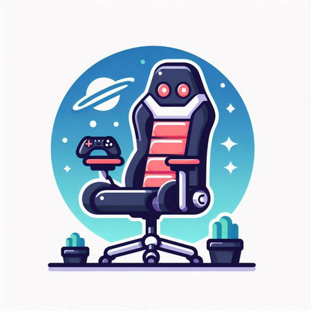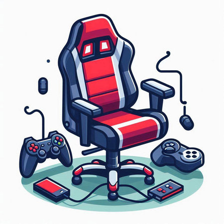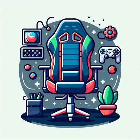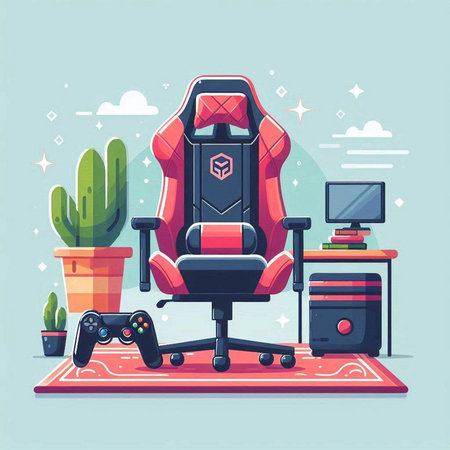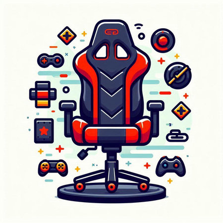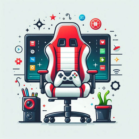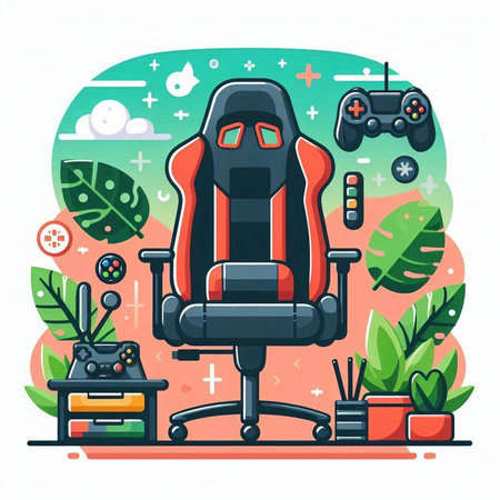 Vector illustration of a red office chair with gamepad and controller.