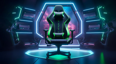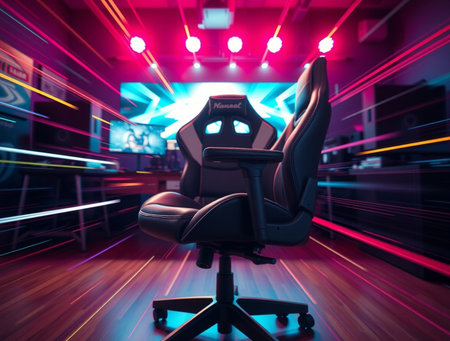 gaming chair on glowing tech background