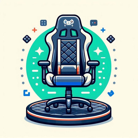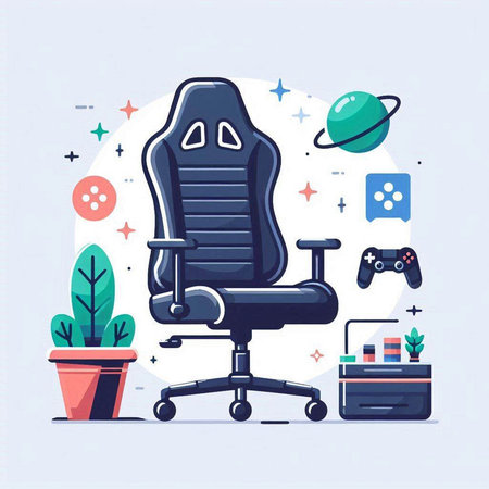 Cartoon office chair with gaming accessories. Vector illustration for your design