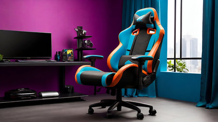 Colorful Background Gamer Chair. AI