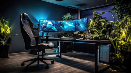 Inspiring office interior design Tech-inspired style Office featuring Gaming setup architecture. Generative AI AIG 31.