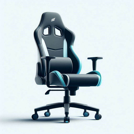Black and blue gaming chair on a white background. 3d rendering