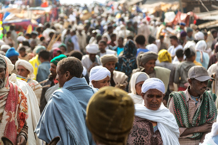 ETHIOPIA,LALIBELA-CIRCA JANUARY 2018--unidentified people in crowd of the genna celebration