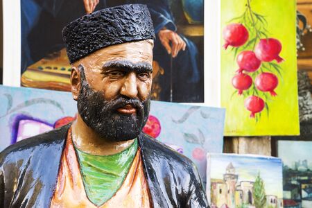 BAKU, AZERBAIJAN, JUNE 27, 2018: the monument of the old Eastern man stands on the street.