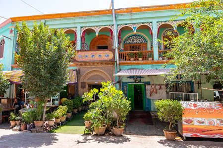 Kashgar Famous Hundred Year Old Tea House Main Entrance View on a Sunny Blue Sky Day