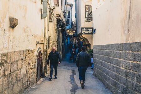 Vintage street and life how looks in ancient City in Damascus (Syrian Arab Republic) after war ended in 17/12/2019