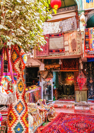 Selling carpets at Sunday Market, Kashgar, Xinjiang, China