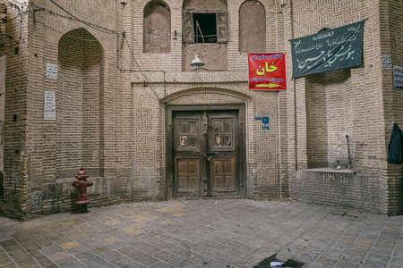 Kerman, Iran - 04.19.2019: A pedestrian gate in walls of historic center of Kerman, Iran.