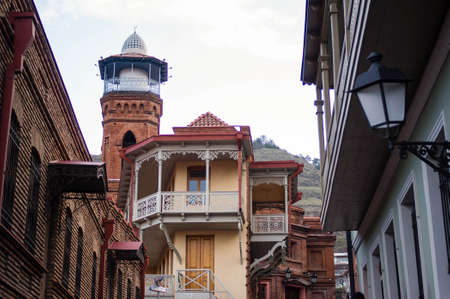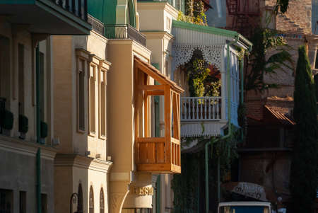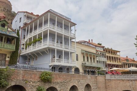 Georgia, Tbilisi - August 30, 2019: Traditional houses in the Old Town of Tbilisi. capital city.