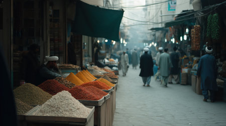A narrow alley with vibrant graffiti covering the walls, A narrow alleyway lined with colorful graffiti and street vendors
