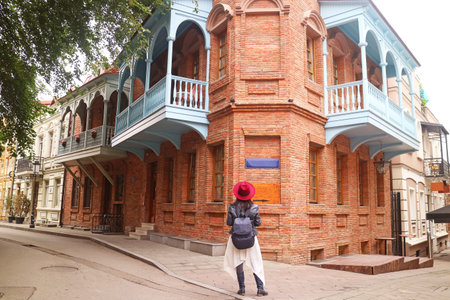 Woman in Wide Brim Hat Being Impressed by Georgian Traditional Buildings in the Old Tbilisi, Georgia