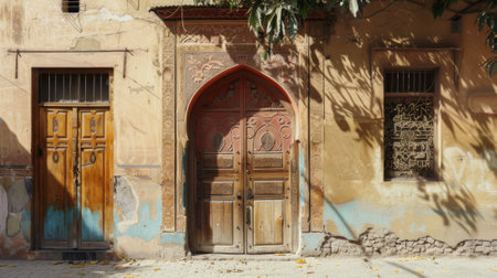 Explore a beautifully crafted wooden doorway adorned with intricate carvings, showcasing the elegance of historic architecture and cultural artistry.