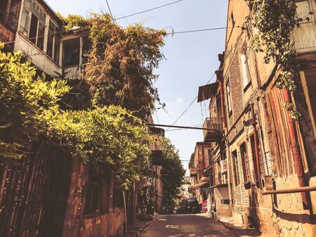 TBILISI, GEORGIA - July 10, 2018: Houses and narrow streets of the old city of Tbilisi, Georgia.