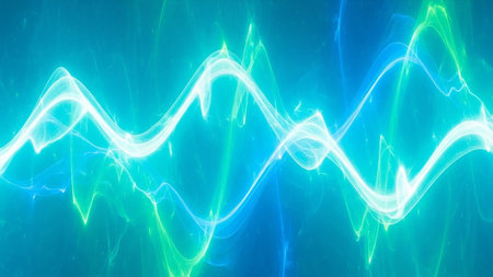 A captivating abstract image featuring a sound wave illuminated with neon lights and vibrant colors, creating a dynamic and futuristic visual effect. Ideal for technology, science, and digital art themes.