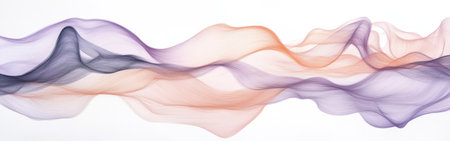 An abstract illustration displays flowing orange and purple wavy lines. The composition is set against a dark background, showcasing the lines' curves and shapes. The lighting appears to be focused, emphasizing the vibrant colors. This image could be used for various creative projects, including design or digital art.
