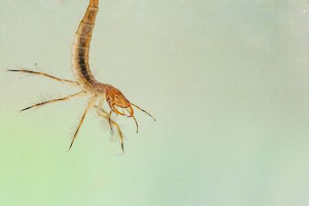 A macro shot of a centipede. A caterpillar crawling on the ground in the forest. Generative AI illustration