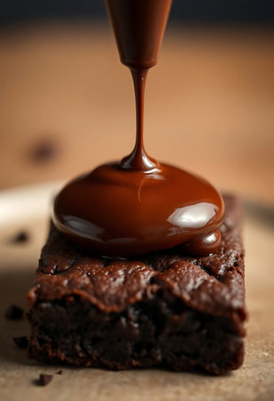 Explore the allure of silky melted chocolate, featuring rich textures and chunks, ideal for dessert-themed projects and culinary delights. Perfect for food photography.