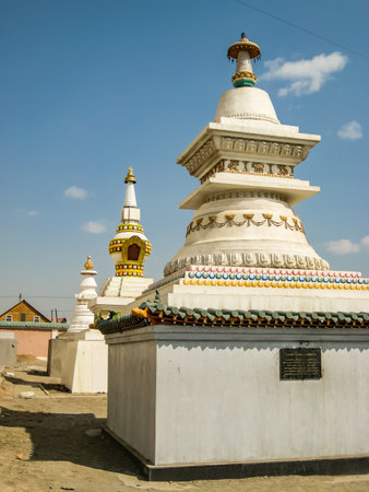 Color image of a Buddhist stupa at a monastery in Mongolia.