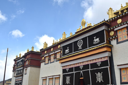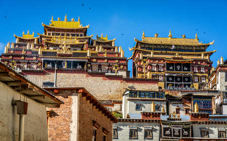Yunnan,China - April 16,2017 : Songzanlin Temple is the largest Tibetan Buddhism monastery in Yunnan Province.It is called the Little Potala Palace or Ganden Sumtseling Monastery.