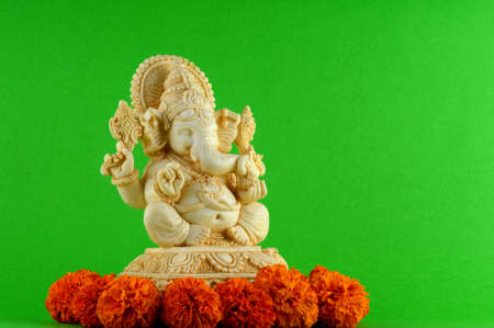 Hindu God Ganesha. Ganesha Idol on green background