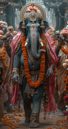 Gudi padwa ganesha: hindu deity divine essence celebrating the joyous convergence of cultural traditions and auspicious beginnings in the vibrant spirit of the hindu new year.