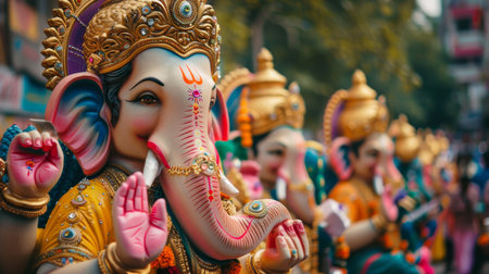 Lively ganesh chaturthi parade showcasing ornate idols and traditional attire in vibrant colors