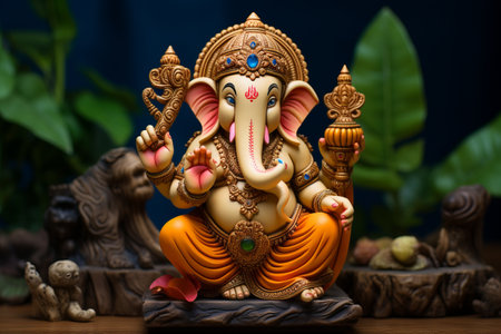 AI Generative Indian religion god Ganesh at traditional India Hindu festival of Diwali festive