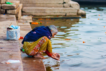 The old man who takes the holy water in Ganges RIver, Varanasi, India