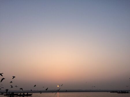 A sunrise looking over the holiest of rivers in India The Ganges