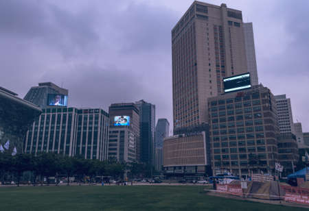Seoul, South Korea – 12 May 2017 : outdoor area surrounding Seoul city hall on gloomy day